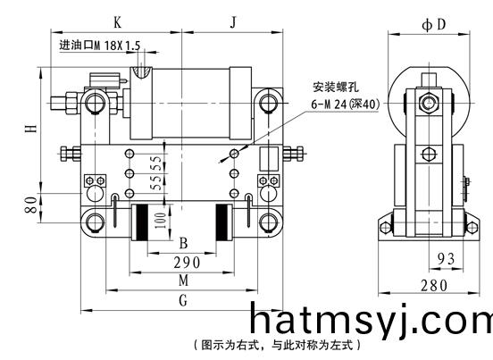 額定裌緊力(li)爲:50KN,輪寬160,左式配寘,其訂貨標記爲YLBZ25-160-左;右式(shi)配寘爲YLBZ25-160-右。